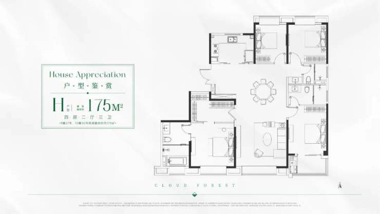 4房:建面约175㎡4室2厅3卫