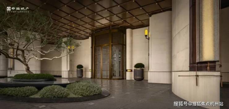 近距离看,项目的入口细节之处又不失奢华,尤其是大量名贵石材(安哥拉黑石材)的运用绝对是大手笔,椭圆形水池搭配波光粼粼的水景,这里还种植了一株约7米高的铁冬青,宛如翡翠屏风,豪门大院的气质扑面而来。