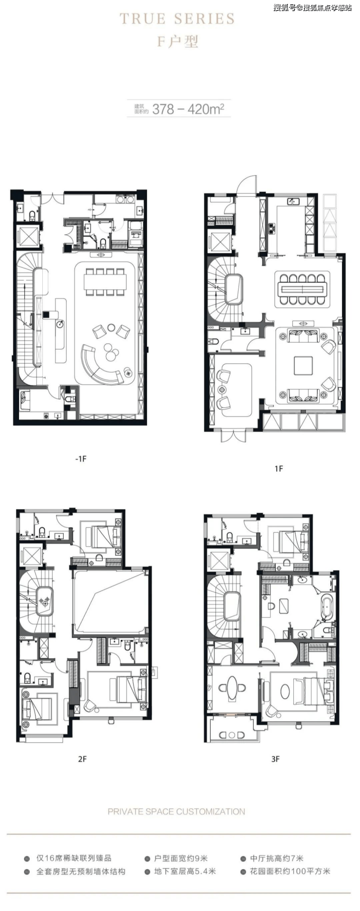 在售户型:建面约310-410平米,地上三层地下一层