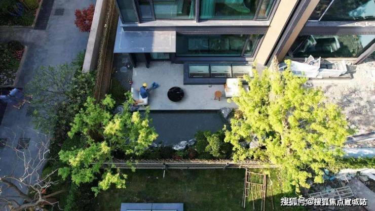 :广富林遗址公园对望,项目园林以“富林十景”为灵感,打造下沉式水幕庭院、黑松景墙等国风场景。