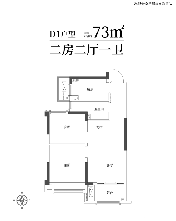 建筑面积约73㎡舒适两房一卫,年轻家庭的向往