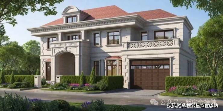 外立面:采用保加利亚维纳多天然石材,搭配手工雕花铜艺与 270° 全景飘窗,斜坡屋顶配弧形老虎窗。