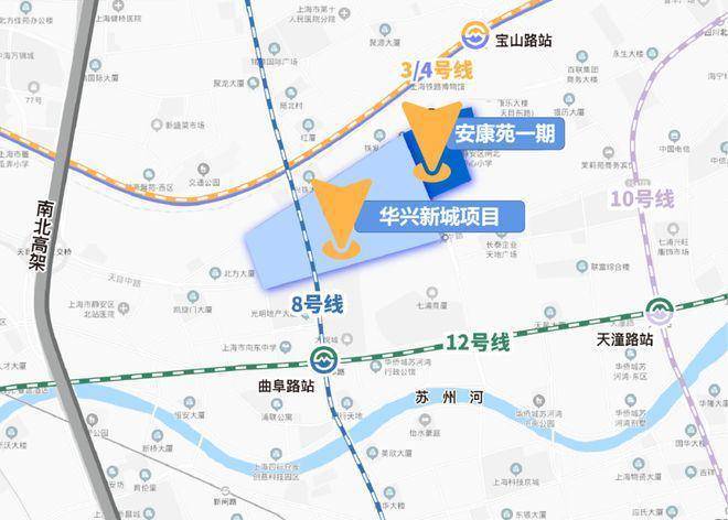 交通方面,项目与3、4号线宝山站直线距离仅约300m;与8、12号线曲阜路站、10、12号线天潼路站直线距离皆在1公里内。周边有3、4、8、10、12号线,五轨交汇,出行十分方便。