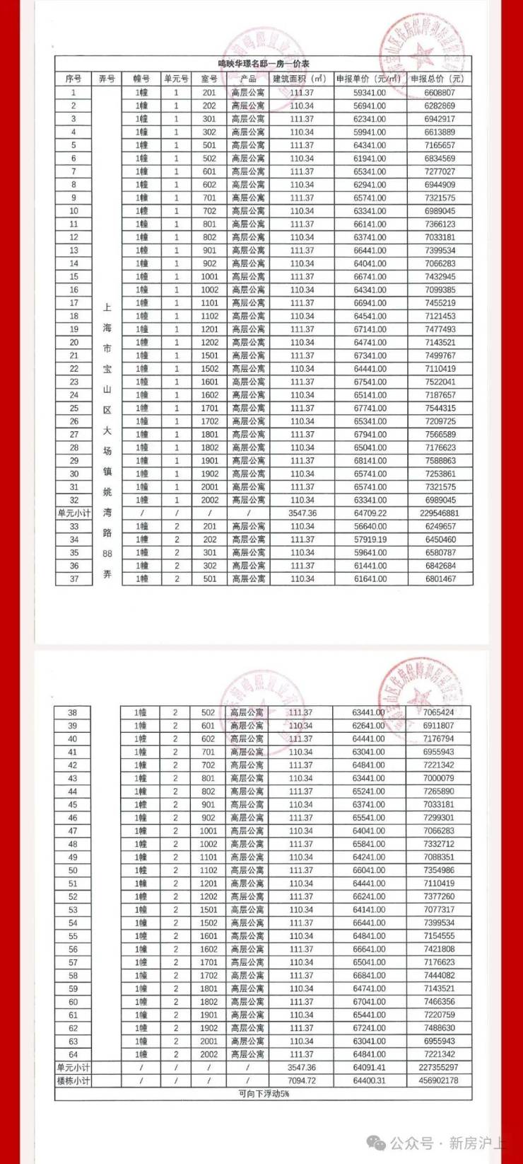 一房一价表如下: