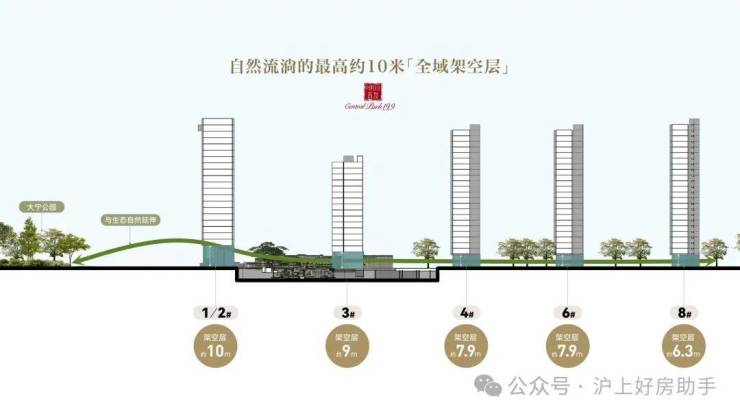 全域约 6.3米 -10 米架空设计,让公园绿意与山水诗韵自然邀约入室,打造公园嵌入式浮岛社区,呈现无界的社区风景。规划缤纷童趣、社区会客厅等多元架空层空间,于此开启生活的温暖缤纷。