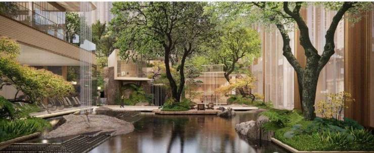 打造多重立体景观,构建悬瀑石涧的城市山林,结合多维的城市立体化空间,纳尽东方风雅逸趣。