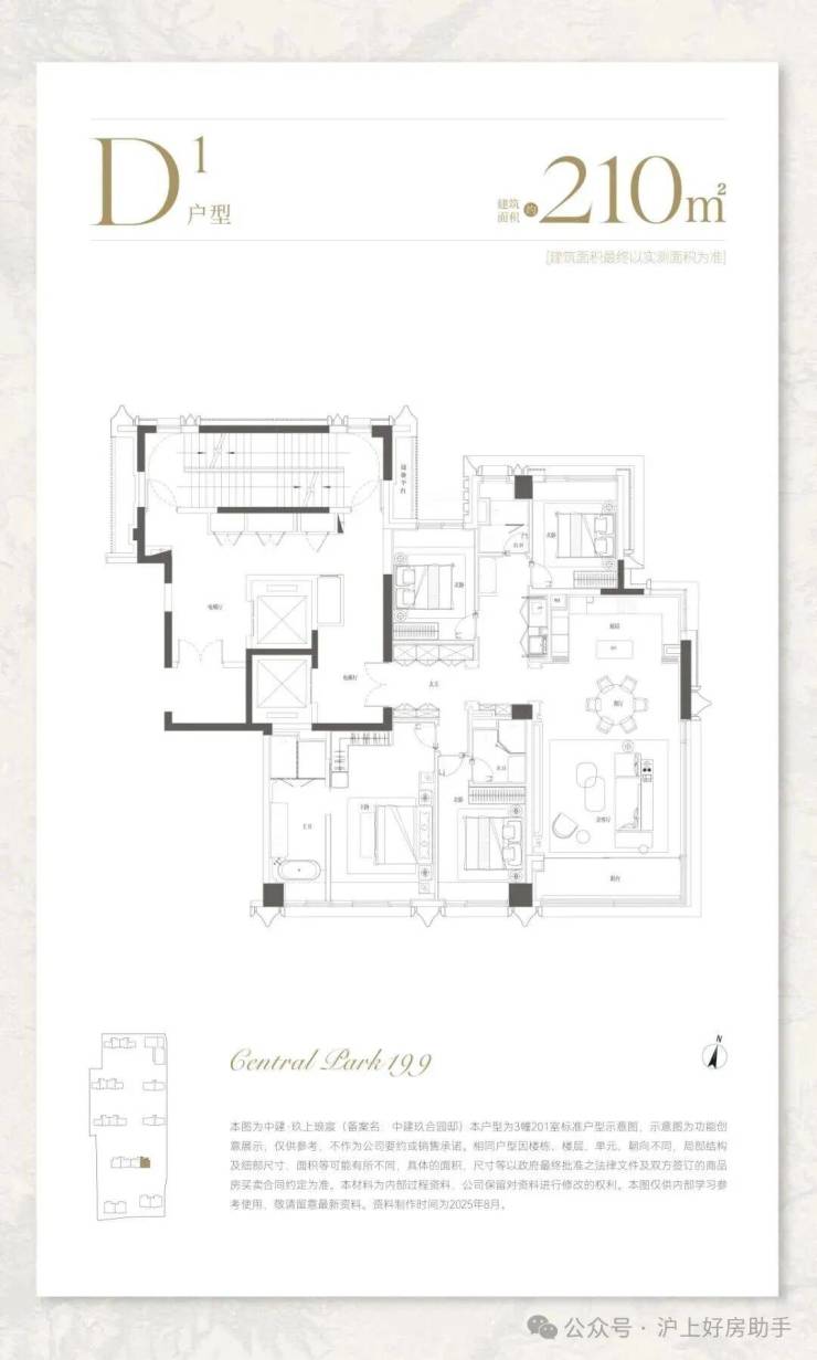 建面约210㎡,分为中间套与边套产品: