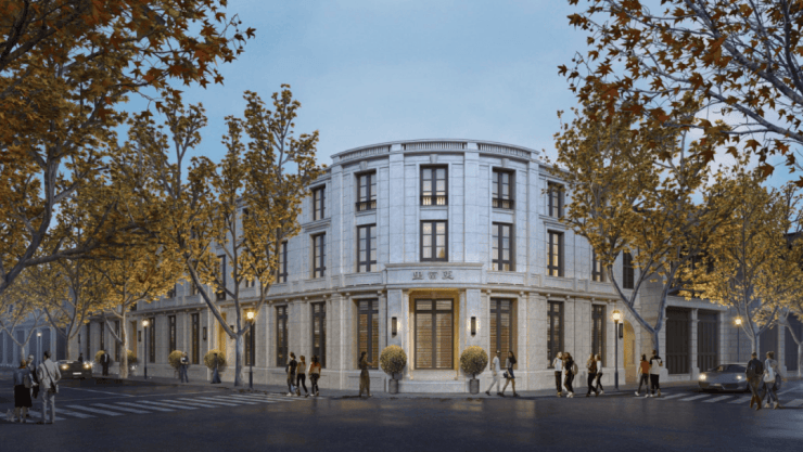 立面设计上,项目还原了上海海派风格,同时使用老砖、老瓦、老石箍等保留构件,更加贴近场地历史,延续传统历史建筑风貌。