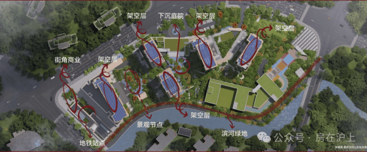 作为业内罕见的“全域定制社区”,璞元将整体地块抬高1.3–1.4米,形成视觉与体验上的“领地感”,宛如瑞虹板块的“托盘明珠”,有效隔绝喧嚣,强化归家私密。