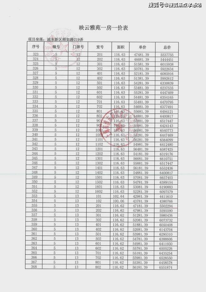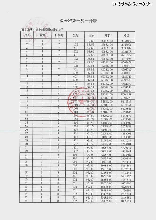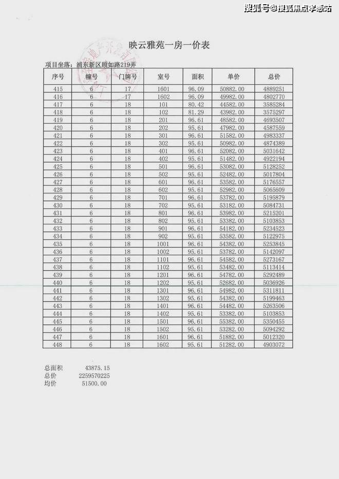 「一房一价表」