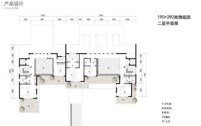 二层都是套房设计+露台+客厅挑空,190的二层是双套房、290的二层是三套房。