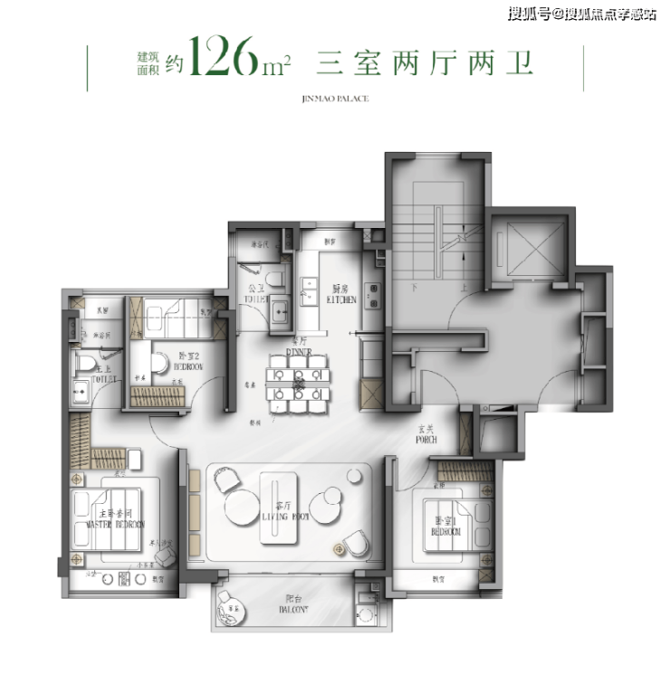 项目推出建面约114、126、144㎡3-4房,偏改善,满足不同家庭需求。