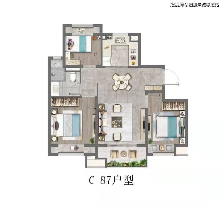两间卧室分别位居于客厅两侧,私密性更佳;