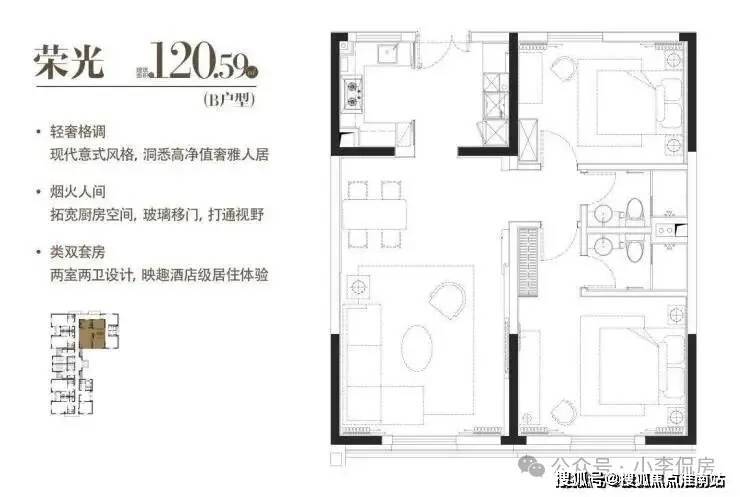 B|荣光|建面约120.59m²|两室两厅一厨两卫
