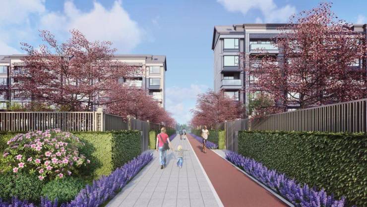 项目容积率仅有1.25,完全是一个低密度江南水岸社区,再加上项目所在地块东西具备非常大尺度的面宽,不仅让项目视野开阔,而且还拥有超大的楼间距。