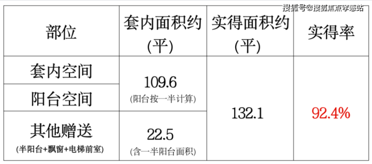 建面约143平四房阳台附赠更大、门口的私家电梯厅预测能有9-9.5个平方的附赠;如果都加在一起,实得率超92%,实际可利用面积超过132平!