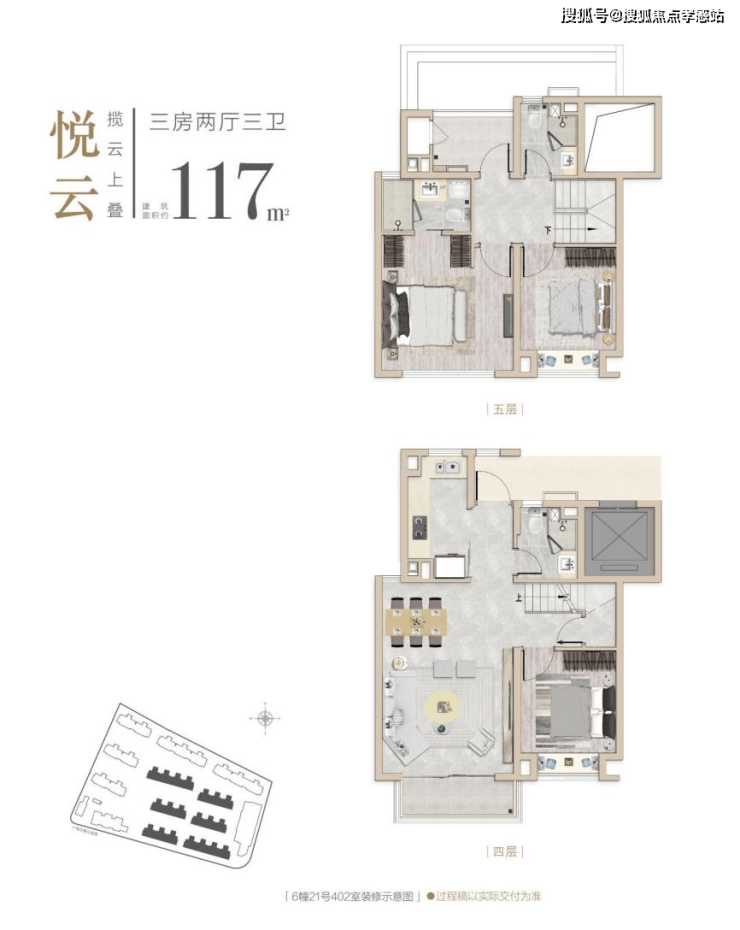 项目的上叠户型3房3卫的设计,每个家庭成员都能找到独属于自己的天地。