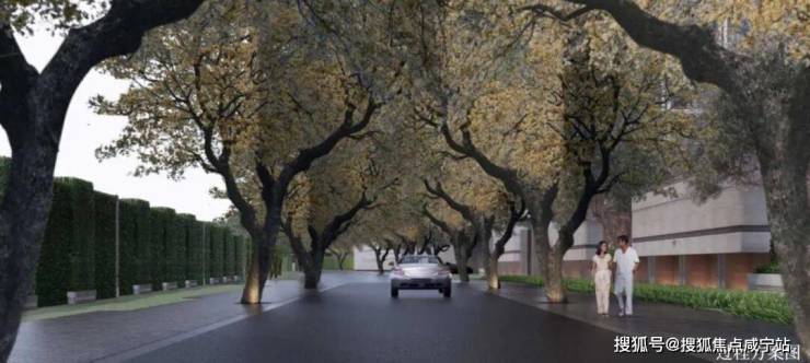 比如,规划道路上的香樟树,要选择合适的树龄与尺寸,项目花了数月才找到10棵合格的。围墙间隔的紫薇树,也是千挑万选而来~