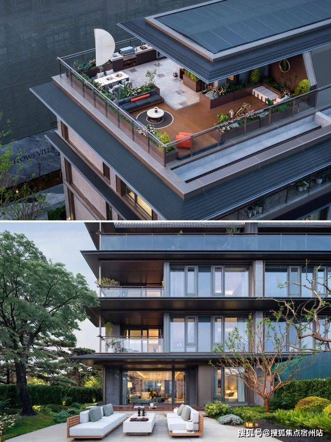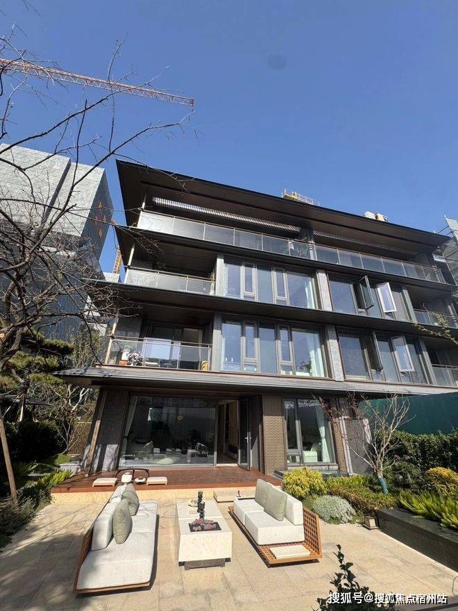 项目遵循绿城 “庐系”“现代形、东方意” 设计理念,外立面采用铝板与真石漆结合,线条简洁流畅,搭配大面积玻璃幕墙,既具现代高端质感,又与周边园林景观和谐相融。建筑布局采用围合式设计,将中央景观最大化呈现,高层与叠墅错落排布,避免视野遮挡,营造 “户户有景,窗窗有光” 的居住体验。