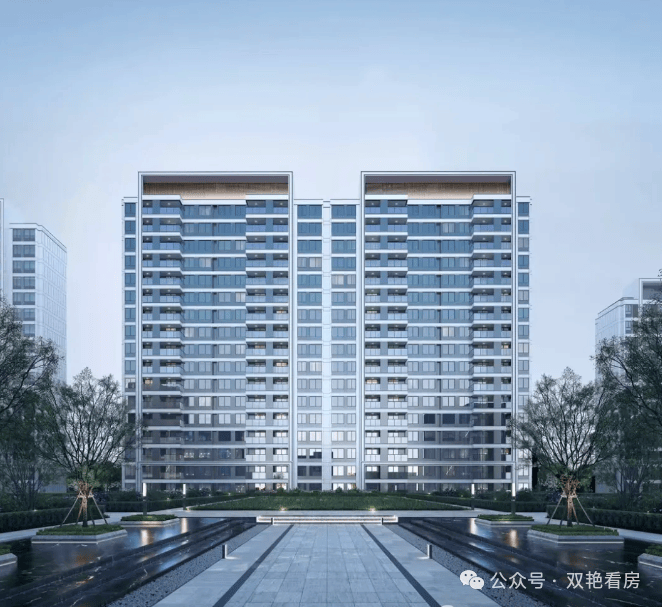 通过简洁的线条勾勒出清晰的建筑轮廓,通透的玻璃面展现出建筑的轻盈之姿,类公建化的立面形象呈现端庄典雅的气度