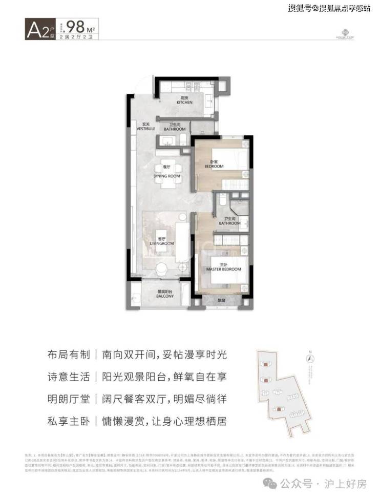在售面积:94㎡/98㎡/100㎡2房2厅2卫