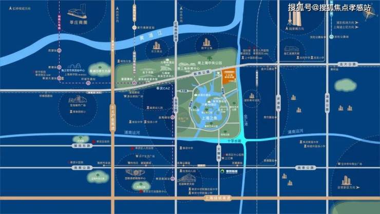 项目位干上海之鱼内,东侧是极具特色的金汇港,水脉碧波倒映生态景观。坐拥约万亩林地,占地面积约4.78平方公里南上海中央公园,更拥享上海之鱼约13公顷环湖景观带和集艺术展览、活力健身、娱乐休闲、游憩观赏为一体的现代城市公园群。