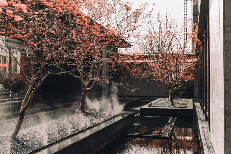 长达200米、近1000㎡ 的中央水系贯穿社区,以五种不同形态灵动呈现。