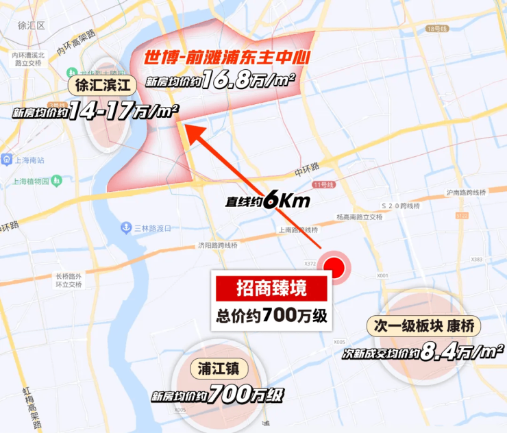 招商臻境官方售楼处:400-1010-064✔✔位于浦东金色中环南部片区,直线距离陆家嘴、徐汇滨江等产业高地直线距离均在12公里以内,直线距离张江城市副中心仅约10公里,直线距离浦东新贵前滩中央活动区仅约5公里!