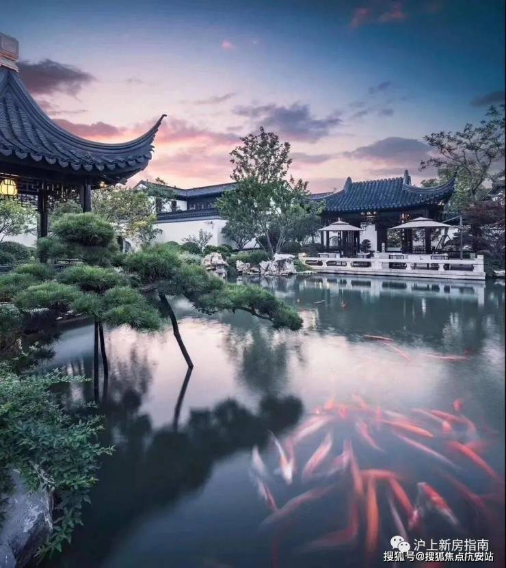 与全国在售中式作品相比,上海桃花源中轴五进制中轴园林,完整性、丰富度堪称全国之最。金瑞园坐北面南,由正南入园,中轴园林不仅设对景峰石、蜿蜒水街、太湖山石、亭台轩廊等景观节点,还以宽广山石庭园和辽阔水景,呈献潆回环抱之势,意趣无穷。另外,山林连绵、亭廊曲折,江南的温婉、隽永,尽藏其中。