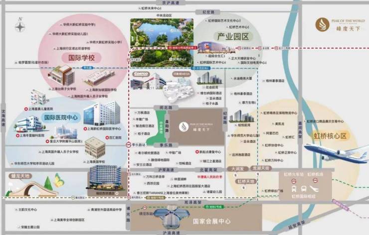 ·虹桥交通枢纽,机场,高铁站,地铁(2.10.17号线),公交,出租等立体交通路网;