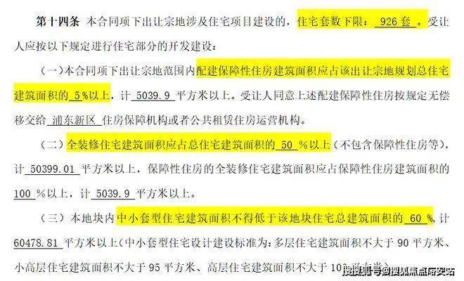 根据出让合同显示,项目占地面积约55988.9m²,容积率为1.8,限高50米,住宅套数下限926套,需配建5%以上的保障性住房,全装修比例50%。