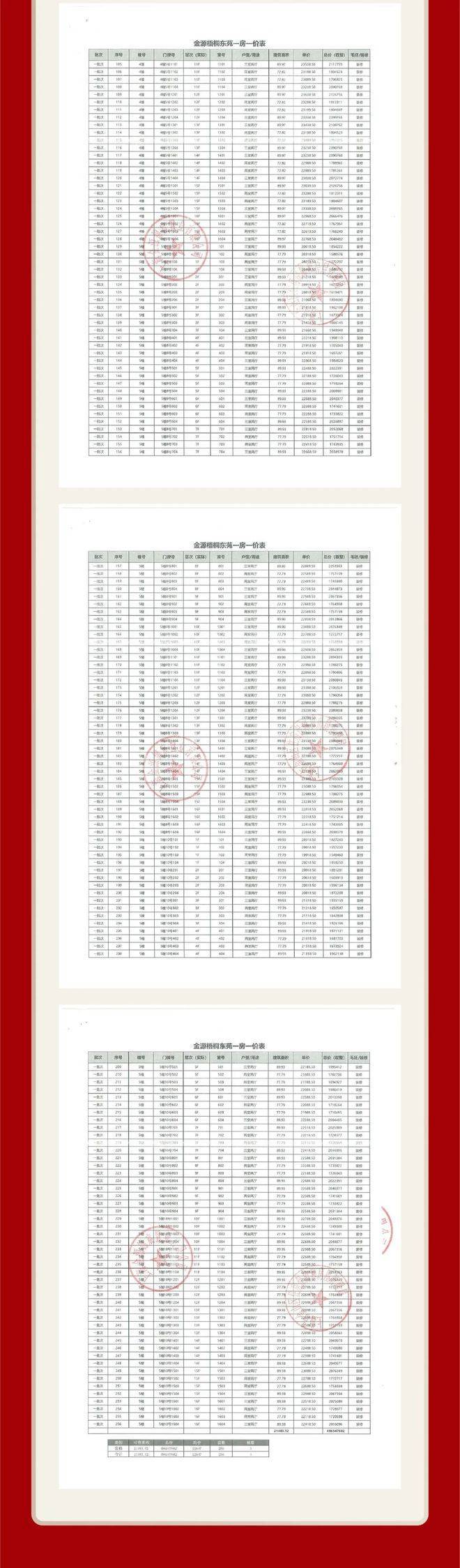 项目一房一价表