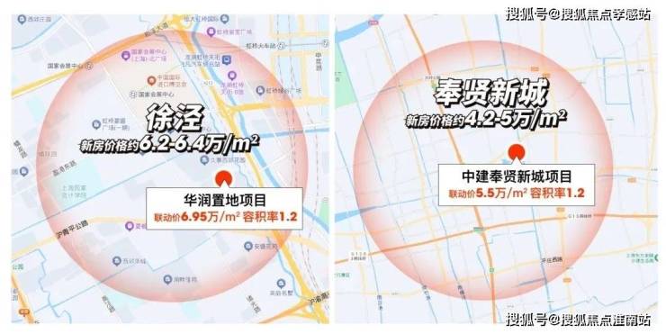 比如青浦徐泾容积率1.2的宅地和奉贤新城容积率1.2的宅地,比起板块其他新房,联动价至少高5000元/㎡!