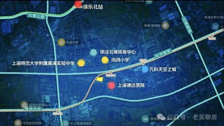 地块北侧即为17号线徐泾北城站,直线距万科天空之城商业约1.2公里。