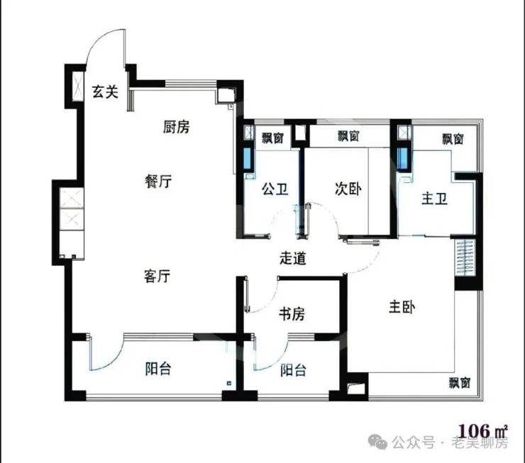 B1户型建面约106㎡3房