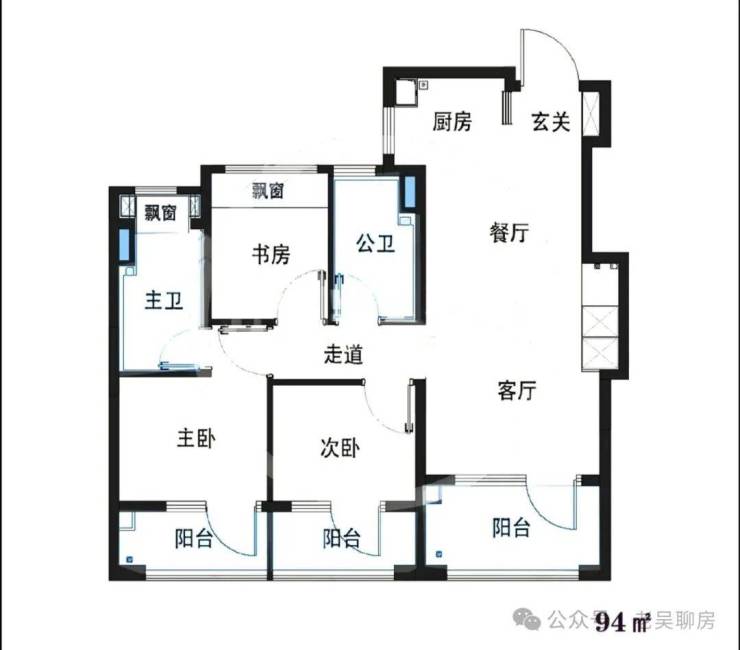 A1户型建面约94㎡3房