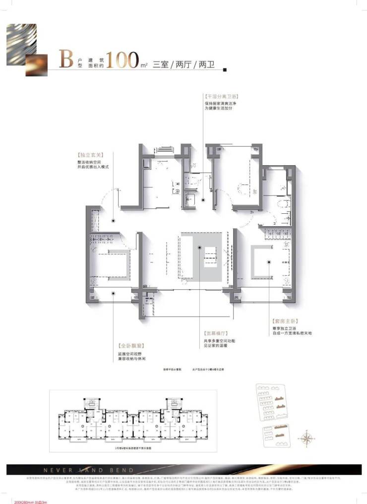 招商云澜湾售楼处话☎:400-1010-064【已认证】建面约100㎡宽厅三房,改善家庭至优选:在南向三开间的基础上,该户型“创新横向宽厅,营造百平米少有的客厅尺度“打造3.5南向面宽。