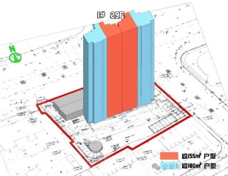 根据设计方案显示, 项目拟建1栋总高29F住宅楼,以及1栋1F商业+1栋居委会+老年活动室等社区配套。