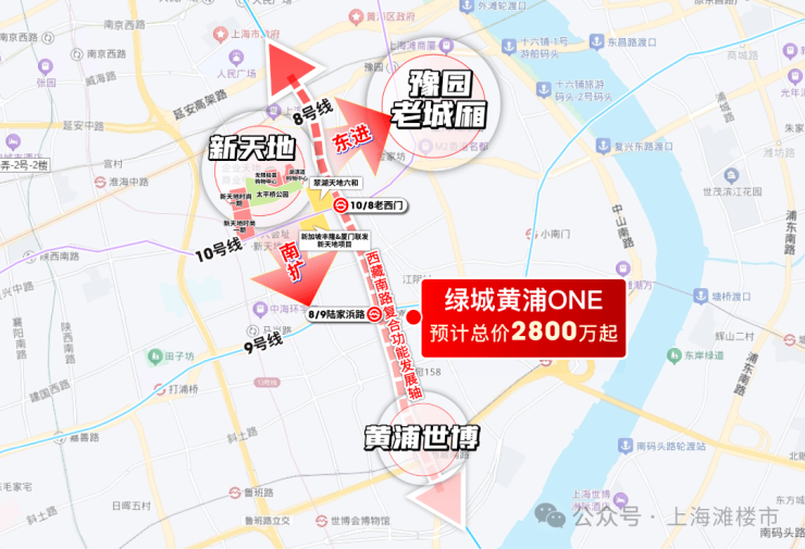 交通方面:项目4轨环绕,300米之内便是8/9号线陆家浜路站。另外,1公里之内涵盖4号线南浦大桥站,9号线小南门站,8号线/10号线老西门站。