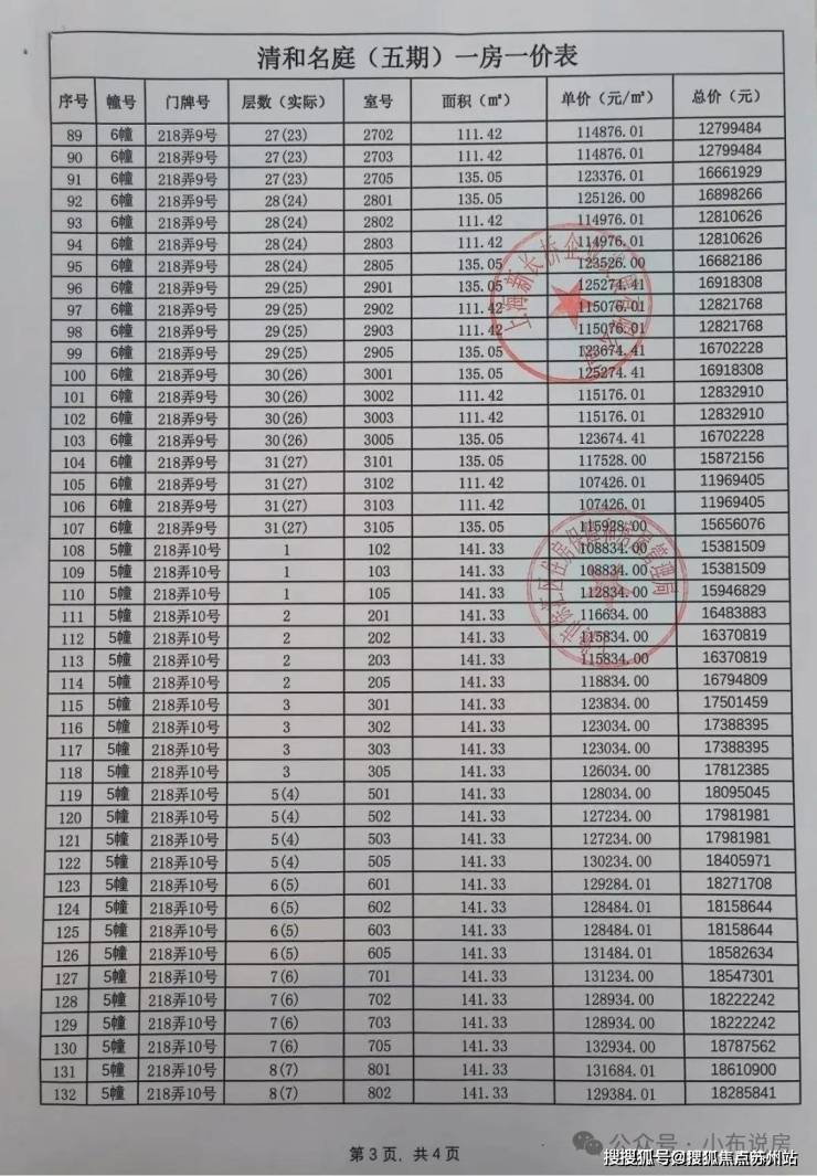最新一房一价表公示: