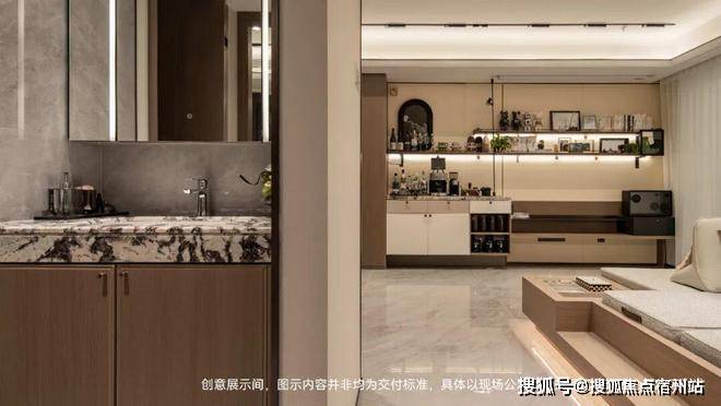 从进门开始,到电视机墙旁边的日咖夜酒吧台,都被设计成了储物空间。