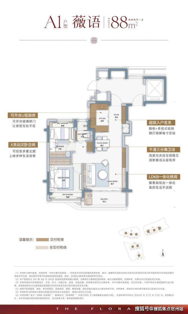 装标和建面约88㎡的户型总体是一致的,厨房多了一个灶蒸烤一体机。