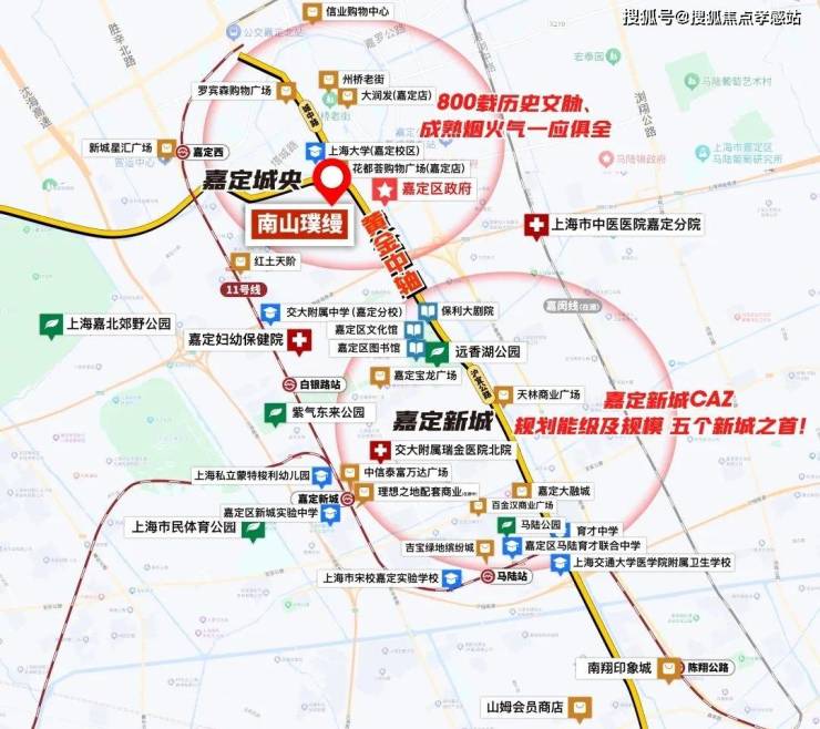 也有上海大学、嘉定区中心医院等教育、医疗资源;