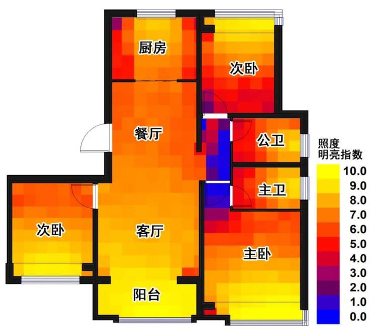 得益于无北连廊和南北通透的设计,虹口源·717建面约140平的户型通风采光数据相当不错。