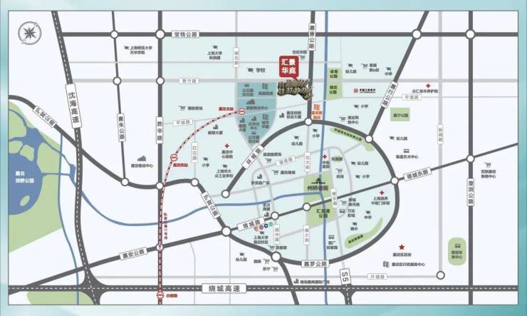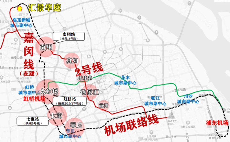 汇景华庭加推房源西面就有小门,直线距离11号线嘉定北站约600米;距离嘉闵线(在建)城北路直线距离约650米