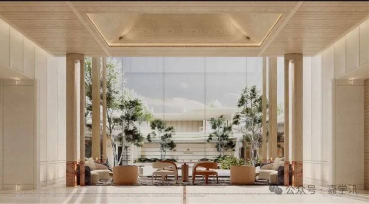 铝板:源自深圳招商玺,打造大面积曲面铝板与通透玻璃设计,营造轻盈舒展的度假感;