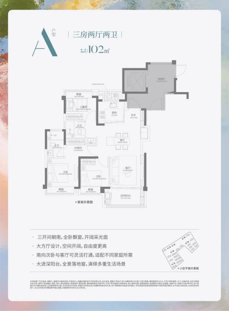 高层:建面约102㎡(3房2厅2卫)