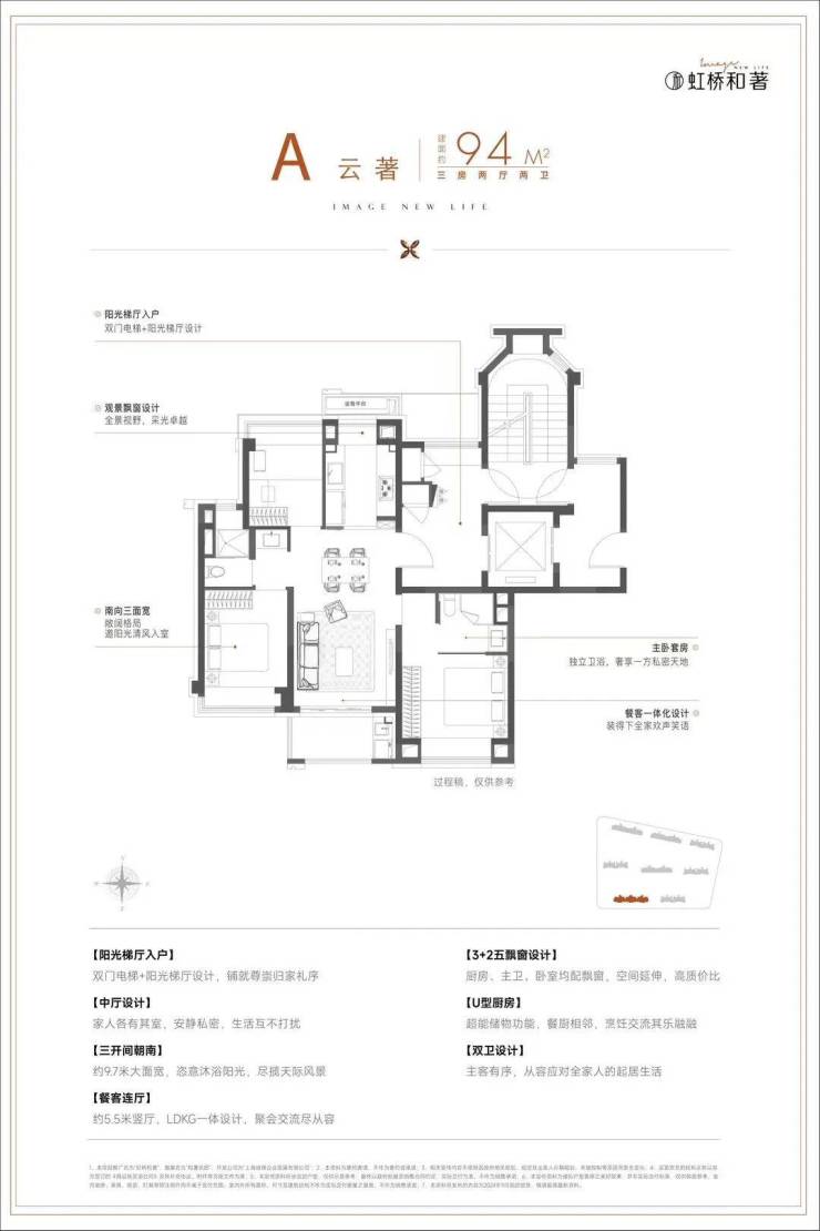 ❤️❤️保利虹桥和著售楼处电话:400 - 1010 - 064❤️❤️LDKB客餐厨阳台一体化设计,整个南向三开间面宽拉伸到约9.7米,升维更轩阔的公区会客厅。飞机户型的空间排布,空间充裕但不浪费,将每一平米更大化利用。