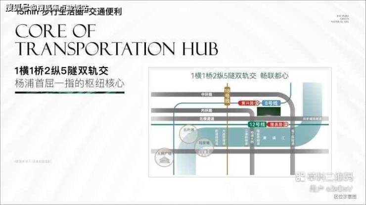 ◎一纵五隧: 800米内环 ,标定塔尖主场。距离内环线仅800米 ,此外还有五大隧道连接浦东(周家嘴路隧道、军工路隧道、江浦路隧道、大连路隧道 、在建的隆昌路隧道)