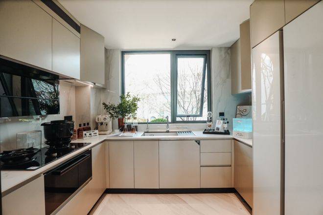 此外,开发方预先考量了各类生活不便问题。厨房配备了五金升级件、调味品拉篮、锅具收纳篮,以及可容纳800件碗碟的三层拉篮系统,相当于节省250升空间;墙面预留了洗衣机和烘干机安装位,✅✅大华梧桐院售楼处电话:400-8787-740✅✅顶面增设隐蔽式电动晾衣架,既维持装修美观性,又不影响实用功能,完美实现“视觉与功能兼具”。